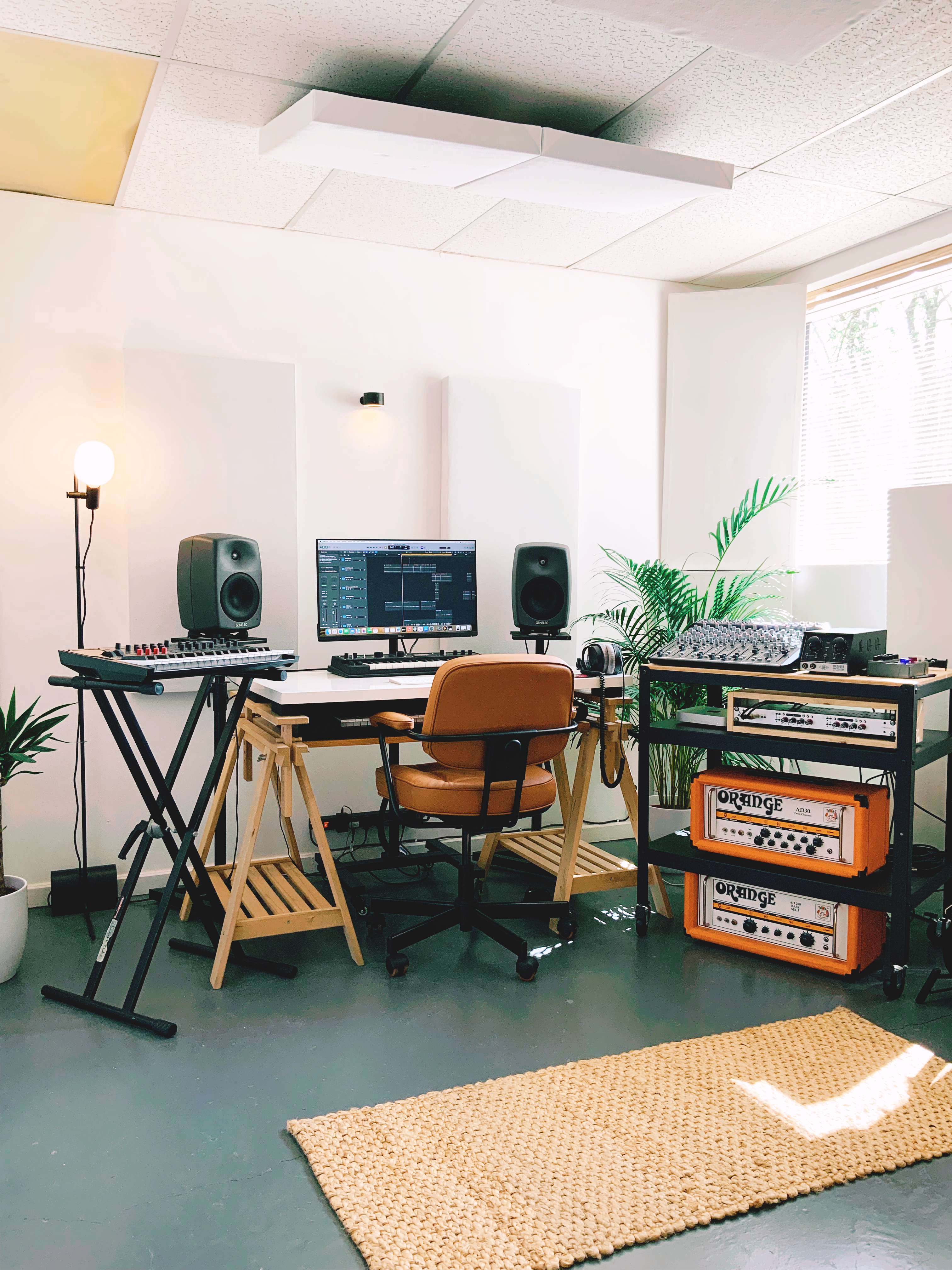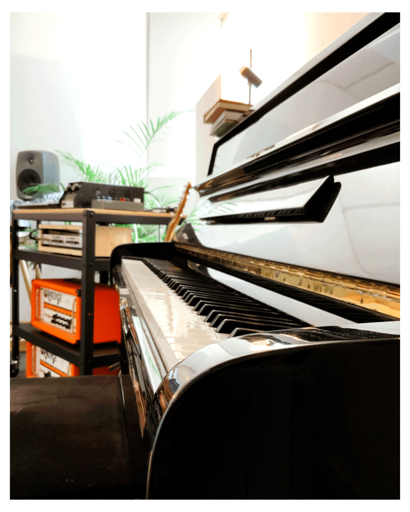 Our music facility is an acoustically treated, light filled production and recording studio. It’s a comfortable and spacious room equipped with a hybrid analog workflow, boutique preamps, an upright piano and a selection of mics from Neumann, SE Electronics and JZ. It’s ideal for solo artists, vocalists, small bands, songwriting sessions and voice over projects.